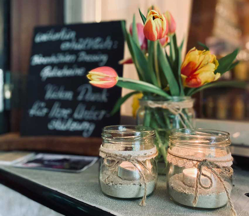 Endlich sind wir wieder durchgehend für Sie da. Mittwoch bis Samstag können Sie bei uns von 9.00h bis 11.30h frühstücken, warme Küche von 12.00h bis 20.00h , Sonntags ab 12.00h-19.00h warme Küche, wir bieten unsere Speisekarte sowie wechselnde saisonale Tafelgerichte an.